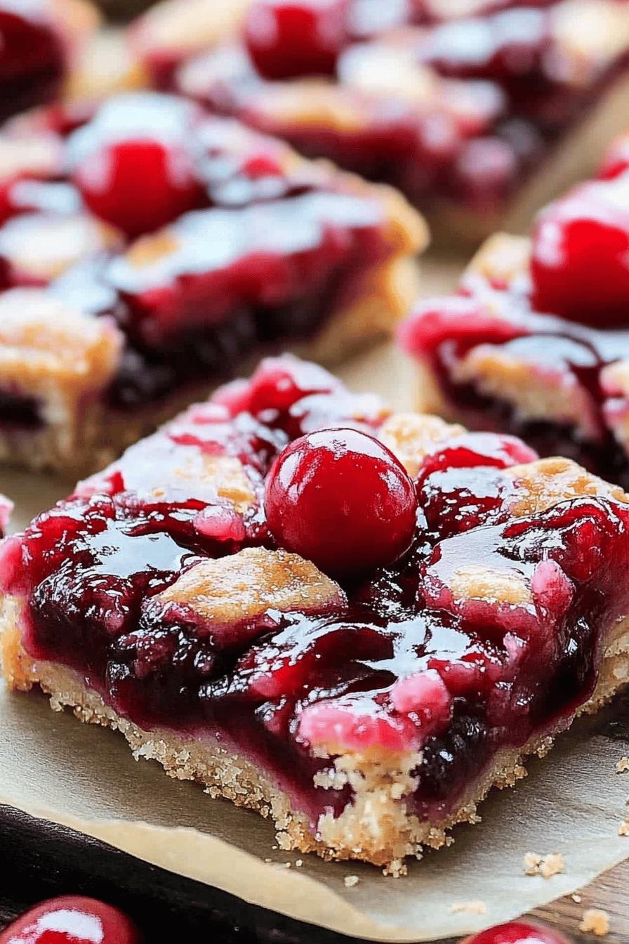 In conclusion, Cherry Pie Bars are a delightful and easy dessert that everyone can enjoy. With their buttery crust, juicy cherry filling, and sweet glaze, these bars are sure to impress at any gathering. Whether you’re celebrating a special occasion or simply treating yourself, they offer a perfect balance of flavors and textures.