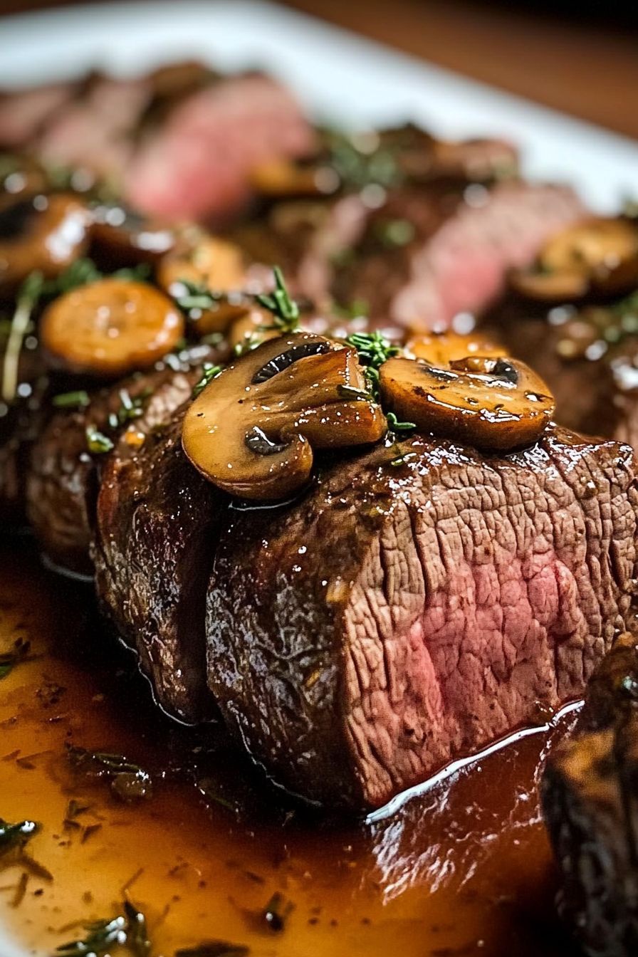 In conclusion, the Juicy Million Dollar Beef Tenderloin is more than just a meal; it’s an experience. This dish combines the tenderness of high-quality beef with the rich flavors of garlic, rosemary, and a savory mushroom sauce. It’s perfect for any special occasion, whether it’s a holiday gathering, a birthday celebration, or an elegant dinner party. Your guests will be impressed not only by the taste but also by the beautiful presentation.